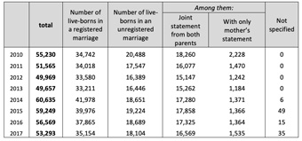 After the definition of a single parent was added to the Civil Code in 2015, up until June 2017, there were 2794 children born with no record of a father on the birth certificate. But, as mentioned above, there were only 1719 people who had a single mother status.