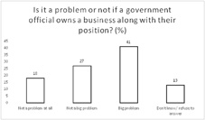 77,2% of the population believes that members of the government have their own businesses. That being said, 68,5% believe that owning a business along with being a government official is a big problem or not a big problem.