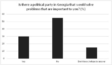 55,2% of the Georgian population thinks that there is no political party in Georgia that would solve problems that are important for them. Only 10% is pleased with the work of the political parties.