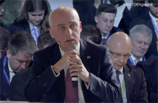 Zalkaliani delivered some important statistics: "The aspiration of Georgian people is confirmed by the three main pillars: the first of all, Georgia is the most operational partner of NATO, it contributes significantly to the NATO operation in Afghanistan, biggest contributor - 870 Georgian soldiers serve in Afghanistan back to back with our allies. ...at the same time we are increasing our defense and security capabilities - we have already met the NATO requirement - 2% GDP on military spending. As well as 20% of major military acquisition. And the third dimension is the black sea security and here again, we are very actively engaged in the strategic dialogue with our NATO partners."