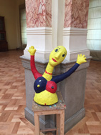 The sculptures vary from different interpretations of female bodies using papier-mache to various animals as well as portraits and silhouettes using the wire. Matilda’s art is vibrantly colorful. In one of her sculptures, she uses cardboard to furniture-type stance for the actual papier-mache which is a very common practice in France according to Matilda. She has brought the art and knowledge acquired in France to Georgians. She teaches art history as well as an art of papier-mache. Matilda Murat gives private lessons in papier-mache to kids and adult alike.