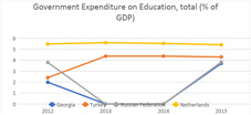 “Give a man a fish and he will eat for a day. Teach a man to fish and he will eat for a lifetime.”- Laozi. This proverb of the ancient Chinese philosopher proves the age-old, pan-civilization relationship of education and the skilled workforce. Much like its neighbors, Georgia is also spending a significant portion of GDP on education. In fact, World Bank data reveals the total expenditure on education as a percentage of GDPs for different countries. In 2015, the Netherlands, an FDI favored country, spent 5.4% of its GDP on education. The scenario is even more interesting closer to home where one of Georgia’s neighbors, Turkey spent about 4.3%, while the other prominent neighbor, the Russian Federation, spent 3.8%. In comparison, Georgia spent about 3.7% of its GDP on education.