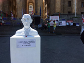 On May 12, 2019, in protest of last year’s events, activists organized a gathering in front of the Parliament of Georgia, where they opened a bust of the Minister of Internal Affairs, Giorgi Gakharia.