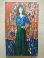 Lately, she has been working on abstract expressionism. Abstract Expressionists emphasize free, spontaneous, and personal emotions and they exercise considerable freedom of technique to reach this goal, with an emphasis laid on the exploitation of the variable physical character of paint to evoke expressive qualities.