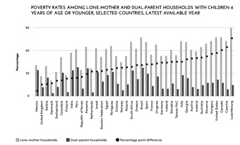 • The vast majority of lone-parent families, which are 8 per cent of households, are led by women, often juggling paid work, child-rearing and unpaid domestic work. Same-sex families are increasingly visible in all regions.