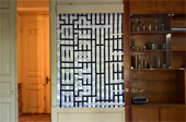 “Woven Architecture” is a site-specific weaving in three sites within the State Silk Museum. The weaving is made of ribbon and is made of and on the architecture of the site. The exhibits include the satin ribbon colored black, white and off white are woven into variations of the sateen weave.