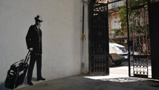 In protest to the decision, a stencil art appeared at the entrance of the building where the ‘Writers’ House’ was located, showing Davit Sarajishvili, a famous philanthropist, founder of Georgian brandy production and the builder of the mansion, leaving the place with a bag.
