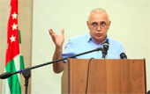Raul Khajimba was elected in 2014 after the May Revolution. He was also a so-called Chairman of the Forum for the National Unity of Abkhazia from 2010–2015. He previously held the offices of so-called Vice President (2005–2009), so-called Prime Minister (2003–2004) and so-called Defence Minister (2002–2003). He unsuccessfully ran for so-called President in 2004, 2009 and 2011.