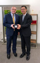 Gvenetadze gave a silver collector coin as a present to the deputy managing director. The coin was issued to celebrate the 100 years of National Bank.