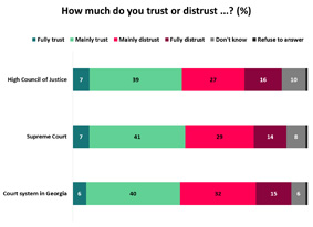 “Overall, the public is divided in their trust towards judicial institutions. More than half of the population has heard of the Supreme Court judge selection process, though few find it to be among the most important events of the summer. Among those that are aware of the selection process, attitudes are more negative than positive. A majority of people in Georgia have never heard about the candidates,” concludes the survey.