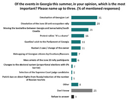 Taking into account the lack of knowledge of the population about the selection process and their stance on it, it may not be surprising that only 1% of the Georgian-speaking adult population considered it as one of the most important events of the summer. The top five events named during the survey were: