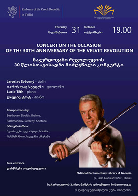 To commemorate the 30th anniversary of the 1989 Velvet revolution the Embassy of the Czech Republic is organizing the concert dedicated to the Anniversary on October 31 at the National Parliamentary Library of Georgia.