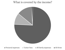 With this income, 75% of respondents cover only personal expenses, 10% manage to cover tuition fees, 13% cover all family expenses, and only 1% all three.