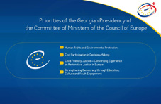 Georgia has four priorities for the Presidency of the Council of Europe: human rights and environmental protection; Civic engagement in decision-making; Child-centered Justice - European Experience in Restorative Justice; Strengthening democracy through the involvement of education and culture.