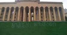 Activists of the civil movement Dare inserted a barbed wire on the fence installed in front of the parliament building.