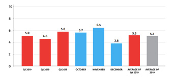 In December 2019 the estimated real growth compared to the same period of the previous year was posted in the following activities: Manufacturing, Transport, and Storage, Wholesale and retail trade; repair of motor vehicles and motorcycles, hotels and restaurants.