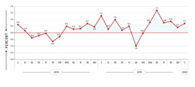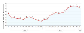 According to the report, in January 2020 the Consumer Price Index increased by 0.7 percent compared to the previous month, while the annual inflation rate amounted to 6.4 percent.