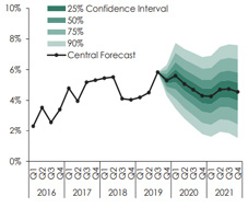 As for future dynamics, the NBG’s forecast of GDP growth for 2020 increased to 5%, from 4.5% (see Figure 2). Despite tight monetary policy (which is itself a response to higher inflation and stronger demand), the factors driving aggregate demand remain strong. Current estimates suggest that on the back of positive trends in the trade balance, net exports as well as a revival of domestic demand and investment related to fiscal stimulus and credit growth, will all make a positive contribution to growth in 2020.
