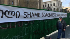 Protesters stood with posters and whistles at the entrances of the Parliament building and made the Shame Corridor to the Georgian Dream lawmakers.