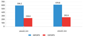 As the report reads, in January 2020, the estimated real growth compared to the same period of the previous year was posted in the following activities: Transport and Storage, Construction, Real estate activities, Accommodation and food service activities, Wholesale and retail trade; repair of motor vehicles and motorcycles, Information and communication, Electricity, gas, steam, and air conditioning supply, Manufacturing. A decrease was registered in Mining and quarrying.