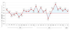 In addition, the prices decreased for oils and fats (-0.6 percent) and milk, cheese and eggs (-0.3 percent); Clothing and footwear: the prices decreased by 3.1 percent, contributing -0.11 percentage points to the overall monthly inflation rate. The prices went down for both footwear (-6.0 percent) and clothing (-1.4 percent);