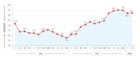 Food and non-alcoholic beverages- the prices in the group increased by 1.3 percent, contributing 0.4 percentage points to the overall monthly inflation rate. Within the group the prices were higher for the following subgroups: vegetables (8.0 percent), fruit and grapes (3.6 percent), mineral waters, soft drinks, fruit and vegetable juices (1.7 percent), sugar, jam, honey, chocolate and confectionery (0.7 percent).