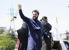 With the blessing of the Catholicos-Patriarch, members of the church were going around the city and blessing the population in Tbilisi.
