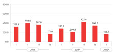 The share of FDI by three major economic sectors reached 87.5 percent in Q1 2020. The largest share of FDI was registered in the financial sector, reaching $94.9 million in Q1 2020, the Real Estate sector was the second with $34.0 million, followed by the hotels and restaurants sector with $15.8 million.