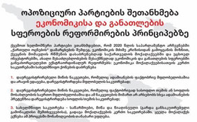The agreement, signed by several opposition parties, including Girchi, European Georgia, National Movement, Strategy Builder and United Georgia, states that after the defeat of the Georgian Dream in the 2020 parliamentary elections, extraordinary reforms will be carried out in the fields of economy and education in order to bring the economy out of the severe crisis and create new opportunities.