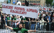 The protesters were trying to push the police to move beyond the barricades. The organizers of the protest were calling on the protesters to not confront the police. One of the leaders of the movement Varlam Goletiani said that people have the right to cross the barricades.