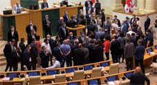 Vakhtang Gomelauri, upon arriving in Parliament, was stopped from speaking at the first minute by the opposition parties. Opposition MPs went to the rostrum and did not allow the minister to continue his speech.