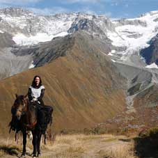 The view from the balcony is so breath-taking it is easy to understand her daring decision to exchange the comfort of an easy, European city-life for the wild beauty of the high Caucasus. In the guesthouse, the adventure continues...Rather than in plush salons guests are greeted by the cosy smell of fresh wood, as Gosiya is a self-made carpenter. She made almost all the furniture in the house! During the long winters she is busy too...she builds and renovates the house, goes hiking with her dog, cares for the horses and looks after the other villagers if they become ill.