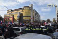 Meanwhile, during a trial 15 opposition activists, including opposition leader Gigi Ugulava, were arrested at a rally near Tbilisi City Court for disobeying police orders after the situation got tense as supporters climbed up on a nearby fence and security cabin. His supporters decided to block the road near the city court, paralyzing the transport in that district. Before the hearing took place, the former president called on supporters to hold a rally at the court.
