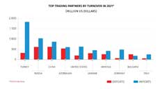 Turkey topped the list of Georgia’s largest trading partners by turnover, with $2.1 billion, followed by Russia with $1.6 billion, China with $1.5 billion, Azerbaijan with $1.1 billion, and the United States with $820 million.