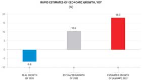 According to rapid estimates released earlier, Georgia’s GDP had contracted by 11.5% in January 2021. This would mean real GDP growth in January 2022 was 4.43% compared to the same month in 2020.