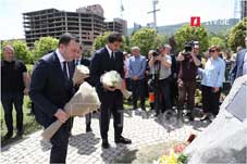 Kaladze, together with the Prime Minister of Georgia Irakli Gharibashvili and the Chairman of the City Council Giorgi Tkemaladze attended the funeral of the victims of the June 13 disaster on Chabua Amirejibi Highway and laid a wreath at the memorial. Officials expressed their condolences to the families of the victims, emphasizing that June 13, 2015 was the hardest morning for the capital.
