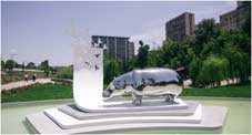 A sculpture of hippopotamus Begi, who escaped the Tbilisi Zoo during the June 13, 2015 flood in the capital, was unveiled by Tbilisi City Hall yesterday in Mziuri Park, a recreational area in the city center of the capital.