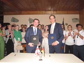 The existing intergovernmental agreement between the German Federal Ministry for Economic Affairs and Climate Protection and the Georgian Ministry of Economy and Sustainable Development for the Manager Training Programme was extended until the end of 2024 on 21 June 2022 during a festive event with the alumni of the programme. The joint agreement was signed by Ambassador Hubert Knirsch and Deputy Minister Genadi Arveladze.