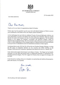 In a letter addressed to the Prime Minister of Georgia Irakli Gharibashvili, the Prime Minister of the United Kingdom of Great Britain and Northern Ireland Rishi Sunak, ...