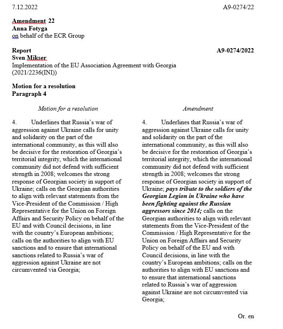 European Parliament member Anna Fotyga, in the annual report on the implementation of the EU Association Agreement with Georgia, raised the issue of amendment, whereby the European Parliament will honor the Georgian heroes fighting in Ukraine.