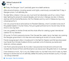 Mikheil Saakashvili responded to the court's decision denying him of postponement or release of the sentence with a letter from the "Vivamed" clinic, saying that he has received a 'death sentence' and will remain in prison with the fatal diseases and that no one in the world except Russia recognizes the court's decision.