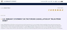 In a statement issued the US Embassy in Georgia expressed deep concern over the cancellation of Tbilisi Pride's planned and closed event due to the presence of an unruly crowd that posed a threat of violence. The Embassy emphasized that every citizen of Georgia is entitled to their Constitutionally protected right to peacefully assemble, and it is the responsibility of the Georgian authorities to safeguard these fundamental human rights.