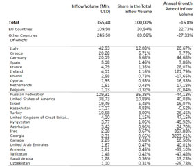Statistically, the highest amount, $129.31 million, was transferred from the Russian Federation. Italy ranks second with $42.93 million, followed by the USA with $38.73 million. Greece occupies the fourth position with $20.28 million, while Germany is in fifth place with $20.19 million.