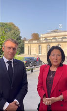 Salome Zourabichvili, the President of Georgia, held a meeting with French President Emmanuel Macron in Paris. Zourabichvili personally shared a video of the meeting on her social media platform.