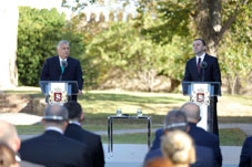 Hungarian Prime Minister Viktor Orbán held a joint briefing with Georgian Prime Minister Irakli Gharibashvili during Orbán's official visit to Georgia.