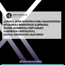Giorgi Gakharia, the former Prime Minister of Georgia, whom Ivanishvili accused of betraying the country in his return announcement speech, briefly responded by saying that Ivanishvili's 'excuses were weak.'