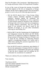 Four Members of the European Parliament have addressed the EU High Representative for Foreign and Security Affairs, Joseph Borrell, regarding the situation in Georgia. In their letter, they expressed concern about recent events in Georgia, particularly the potential swift adoption of "Foreign Agents" law.