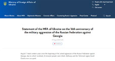 The Ministry of Foreign Affairs of Ukraine issued a statement on the 16th anniversary of the August War, calling on Russia to immediately withdraw its troops from the occupied territories of Georgia.