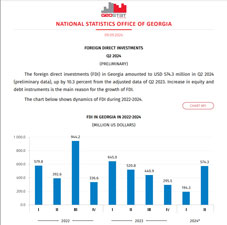 FDI in Georgia Reaches USD 574.3 Million in Q2 2024, Marking 10.3% Increase