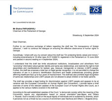 On September 10, the Council of Europe Commissioner for Human Rights, Michael O'Flaherty, published a letter addressed to Georgian Parliament Chairman Shalva Papuashvili.